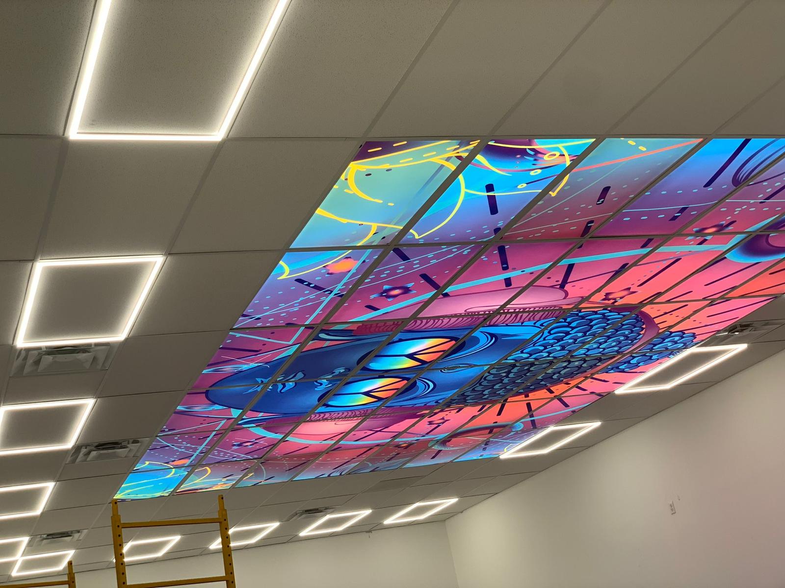 The price is per panel with design and led panel included. The design can be anything you desire for your store. You can take one design panel or make a whole ceiling filled with you custom designs.