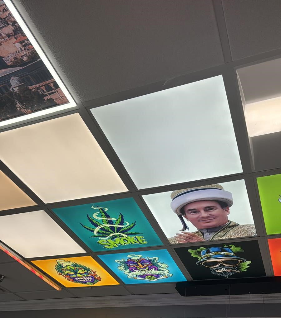 The price is per panel with design and led panel included. The design can be anything you desire for your store. You can take one design panel or make a whole ceiling filled with you custom designs.